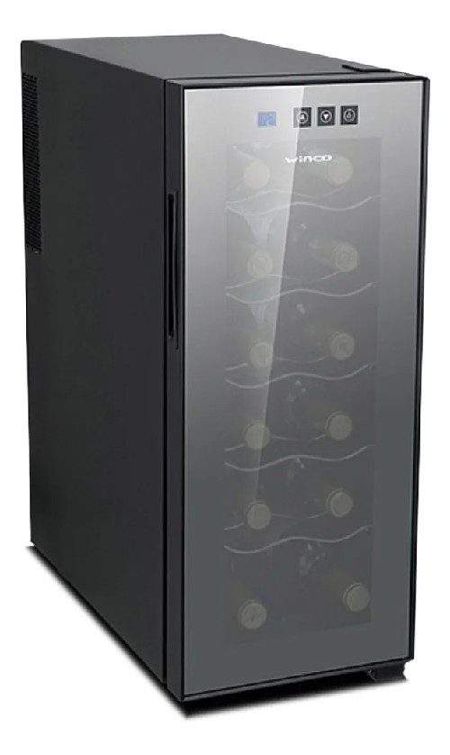 Capacidad neta 33l (12 botellas), rango de temperatura de 11º a 18ºC, puerta doble de vidrio templado, luz led azul interna, 5 rejillas de cromo separadoras. Con dimensiones de 66 cm de alto, 30 cm de ancho y 55 cm de profundidad. Origen chino