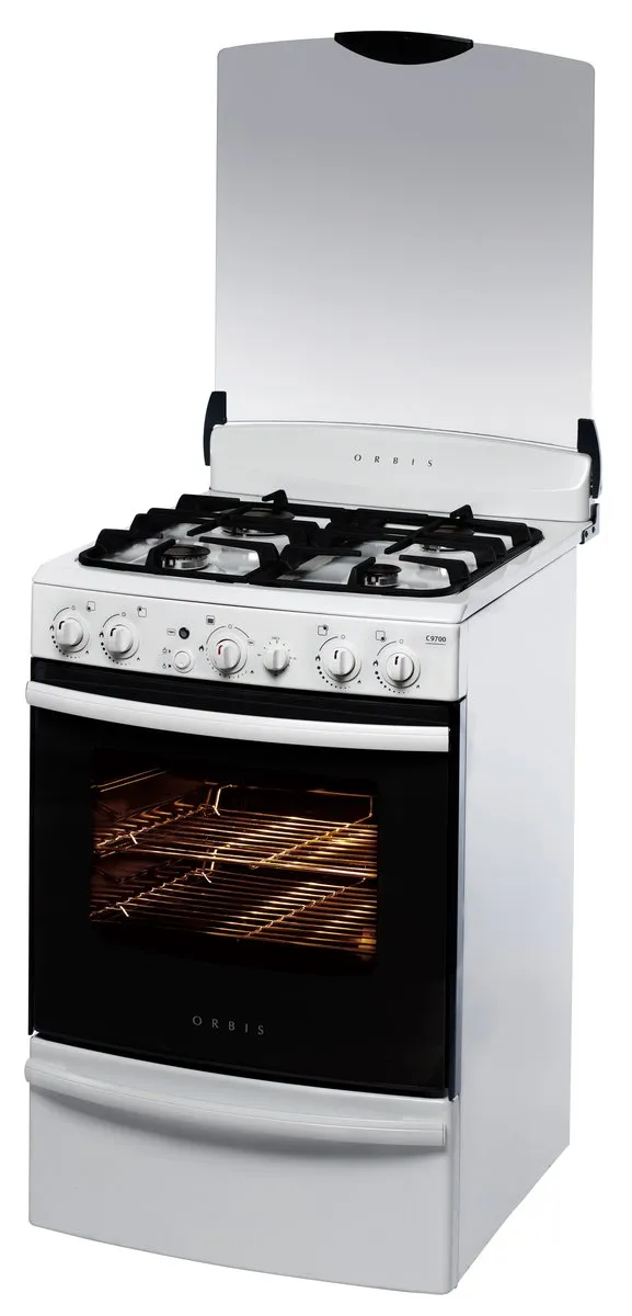 Cajón parrilla deslizable Encendido electrónico Grill eléctrico Horno autolimpiante con 3 niveles de cocción Luz de horno frontal Puerta desmontable de doble vidrio Rejillas de hierro fundido tapa de vedrio templado Termostato y cuentaminutos Válvula de seguridad en cada quemador Ancho 55 cm Alto 85 cm Origen Argentina
