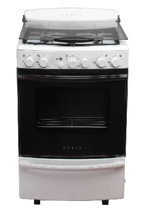 COCINA MULTIGAS ENLOZADA REJILLA DE FUNDICION CON TAPA DE VIDRIO ENCENDIDO TIMER GRILL LUZ EN EL HORNO VALVULA DE SEGURIDAD ALTO 86 CM ANCHO 55 CM PROFUNDIDAD 61.5 CM ORIGEN ARGENTINA