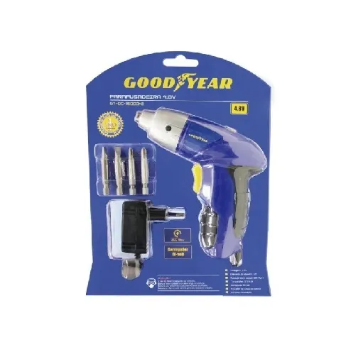 Potencia: 4.8V Batería Ni-cd de 600mAh Velocidad: 200RPM Carga de 3-5 hs Grip de Agarre acolchonado Luz indicadora de LED Indicador del nivel de batería Esfuerzo de torsión: 2.5 N.M. 4 Puntas incluidas Encaje 1/4» Con bloqueo automático del cabezal ORIGEN CHINA