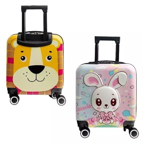 Valija de cabina infantil carry on rígida de 18 pulgadas. Cuenta con 4 ruedas 360º que le permite moverse en todas las direcciones sin problemas. Frente CON RELIEVE igual a la foto y reverso con estampa . Medida justa para llevar en el avión. Divisor organizador intermedio con red y elásticos. Carro reforzado y manija extensible 2 posiciones. la diversión a todas partes. Origen China.