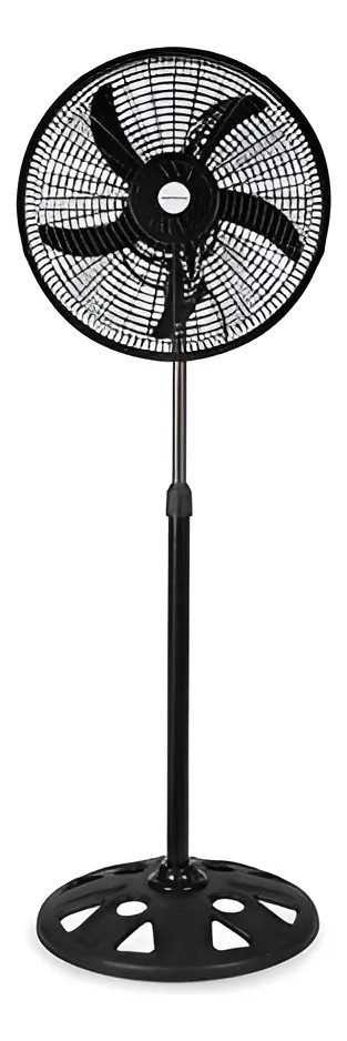 Ventilador de pie. 3 Velocidades. 5 Aspas de plastico. Tamaño 18 pulgadas. Motor potenciado de 65W. Giro 360º. Barral telescópico. Origen china.